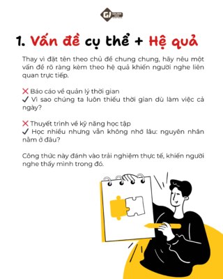 Thay vì đặt tên theo chủ đề chung chung, hãy nêu một vấn đề rõ ràng kèm theo hệ quả khiến người nghe liên quan trực tiếp.