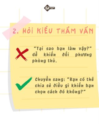 Thay vì hỏi “Tại sao?”, hãy hỏi “Bạn có thể chia sẻ thêm điều gì khiến bạn chọn cách làm đó không?”