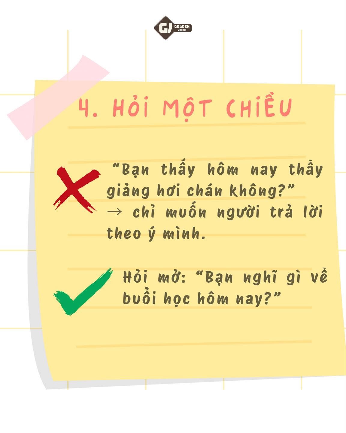 Câu hỏi quá hẹp hoặc định hướng quá rõ khiến người nghe chỉ có thể trả lời “có/không” hoặc theo ý bạn.