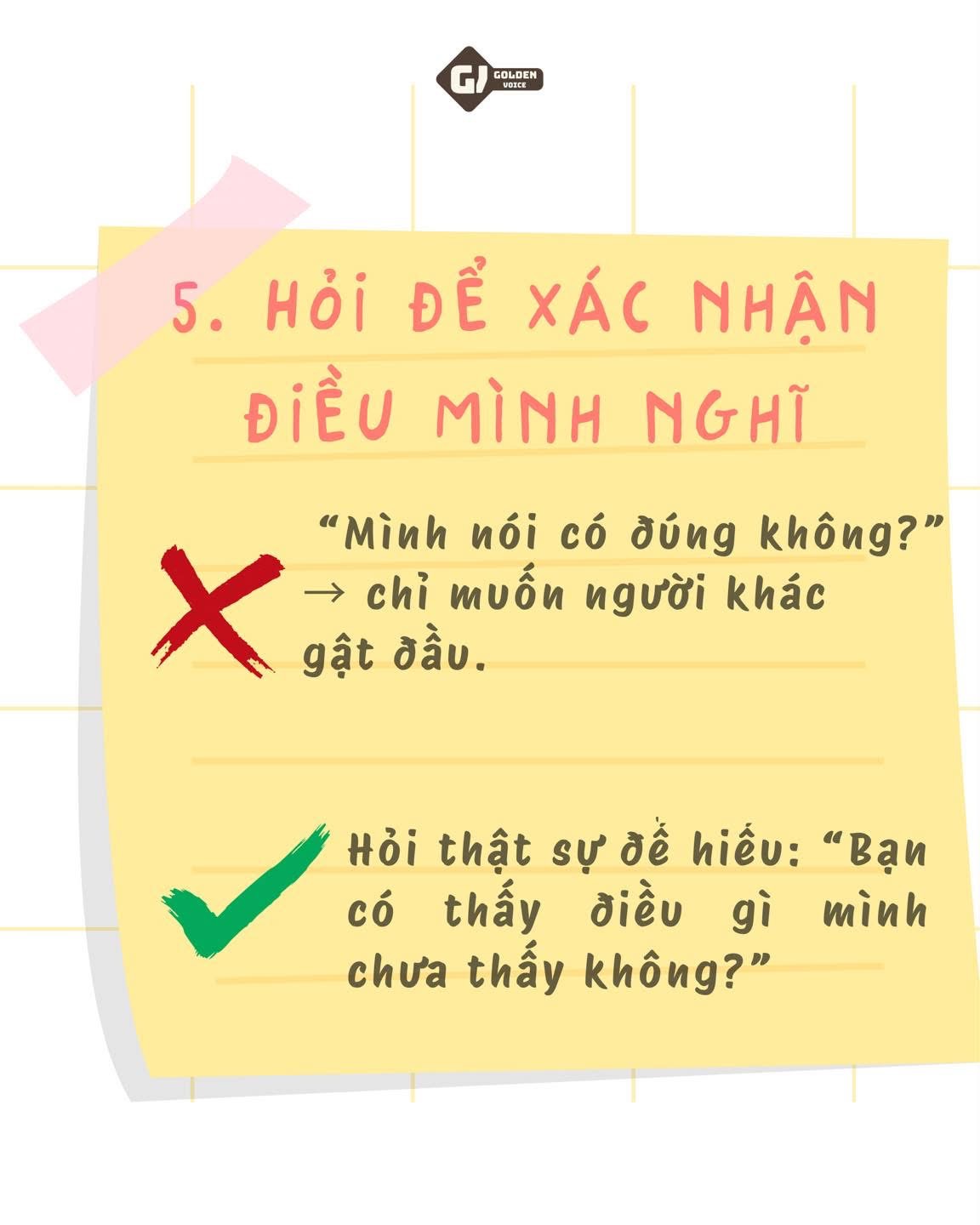 Hãy để ý ngữ điệu, ánh mắt và phản ứng người nghe. Nếu họ chậm trả lời, nhìn lảng đi hoặc cụt hứng, hãy điều chỉnh lại cách hỏi.