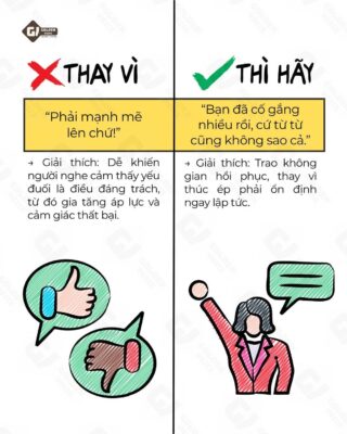 ❌ Thay vì: “Phải mạnh mẽ lên chứ!”