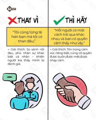 ❌ Thay vì: “Tôi cũng từng tệ hơn bạn mà tôi có than đâu.”
