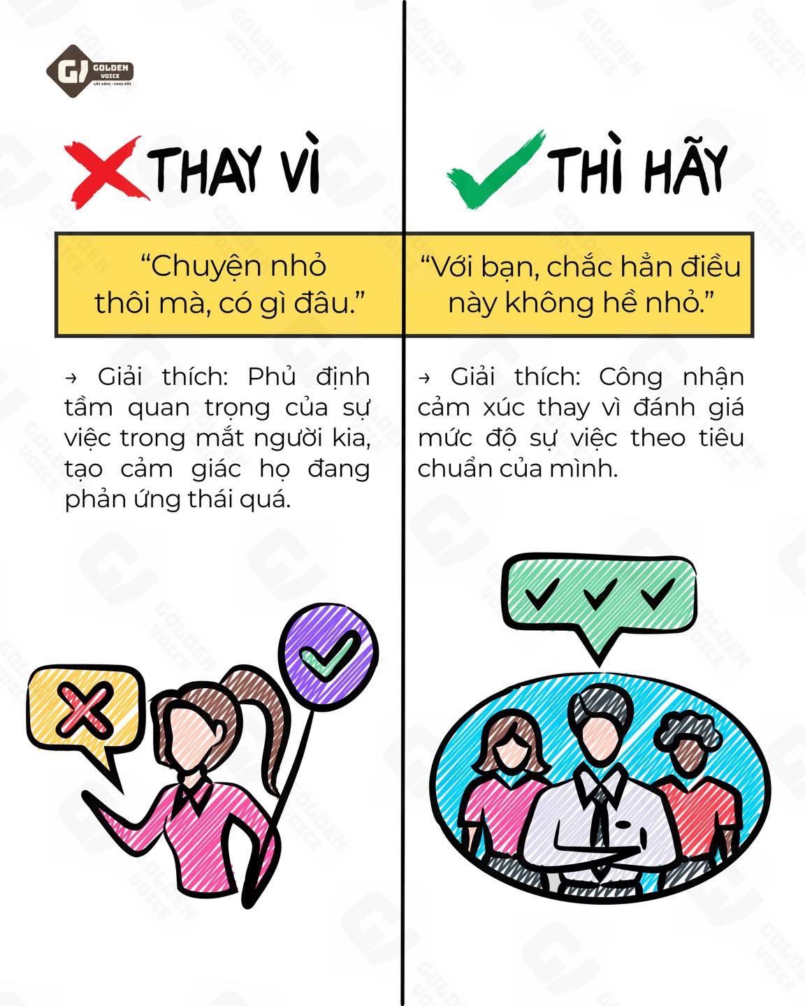 - Tránh phủ nhận cảm xúc (dù là vô tình)