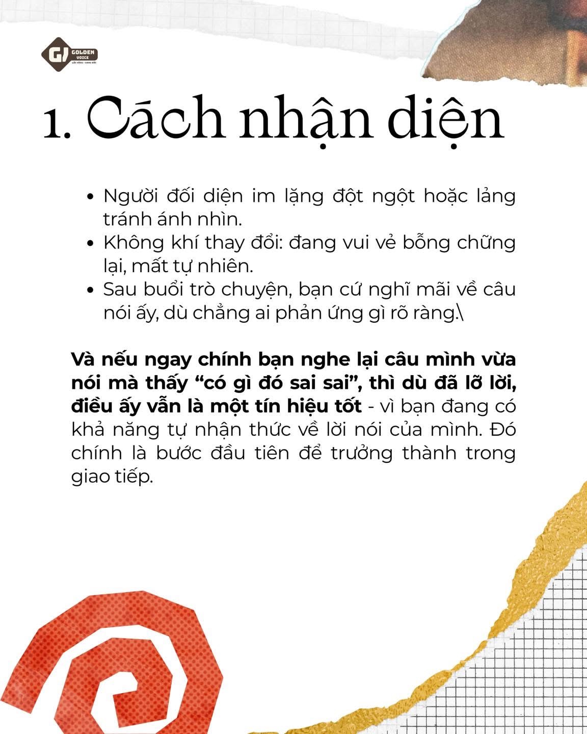 Và nếu ngay chính bạn nghe lại câu mình vừa nói mà thấy “có gì đó sai sai”, thì dù đã lỡ lời, điều ấy vẫn là một tín hiệu tốt – vì bạn đang có khả năng tự nhận thức về lời nói của mình. Đó chính là bước đầu tiên để trưởng thành trong giao tiếp.