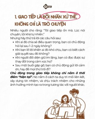 Chủ động trong giao tiếp không chỉ nằm ở thời điểm “hiện tại”. Nó nằm ở cách ta duy trì mối liên kết, xây dựng tín nhiệm, và chịu trách nhiệm cho những ảnh hưởng mình tạo ra trong tương tác với người khác.