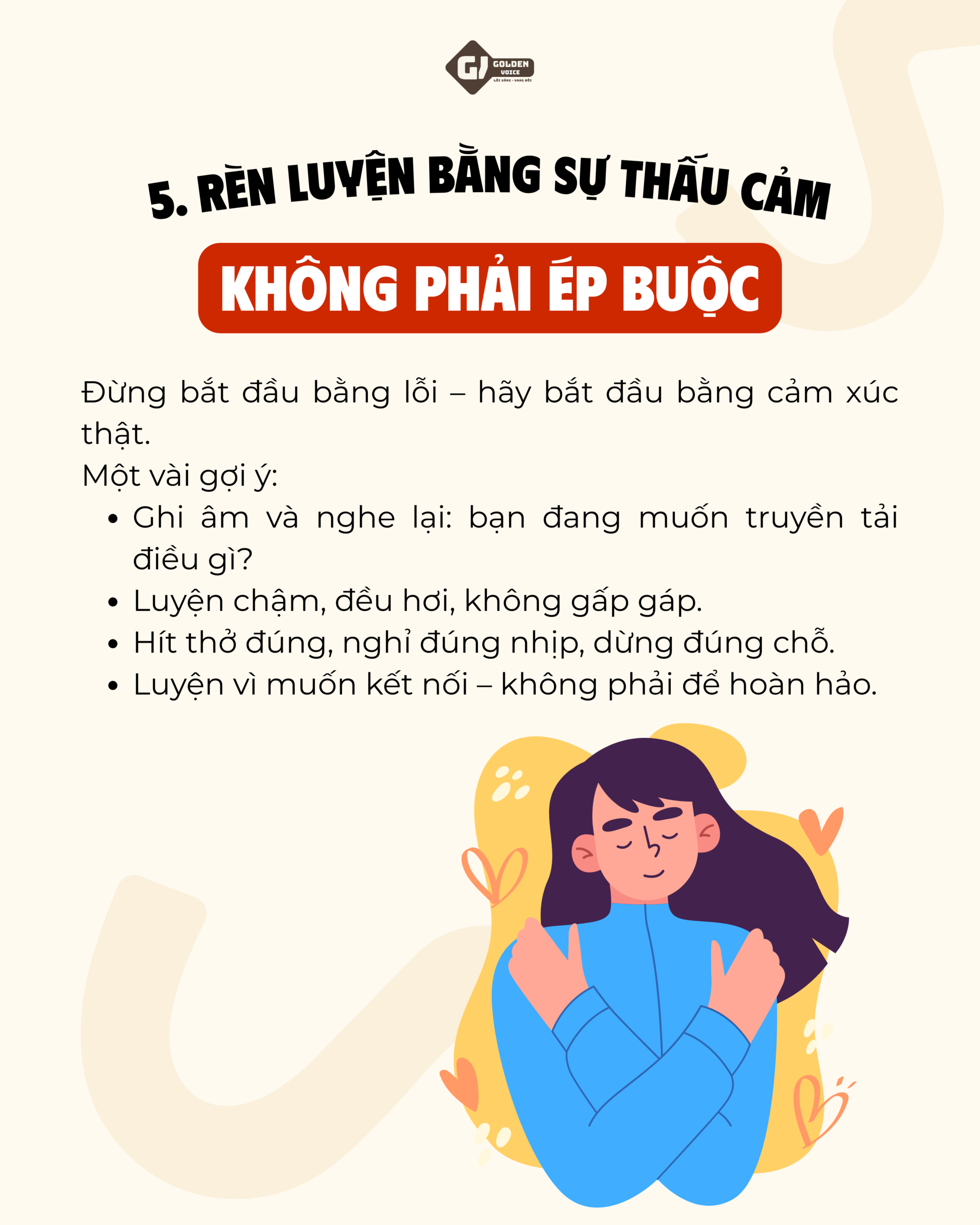Khi không còn đặt áp lực “phải chuẩn”, người học bắt đầu biết quan sát hơi thở của mình, hiểu cảm xúc thật của mình, và điều tiết ngữ điệu như một dòng chảy tự nhiên – thay vì cố làm theo hướng dẫn rập khuôn.