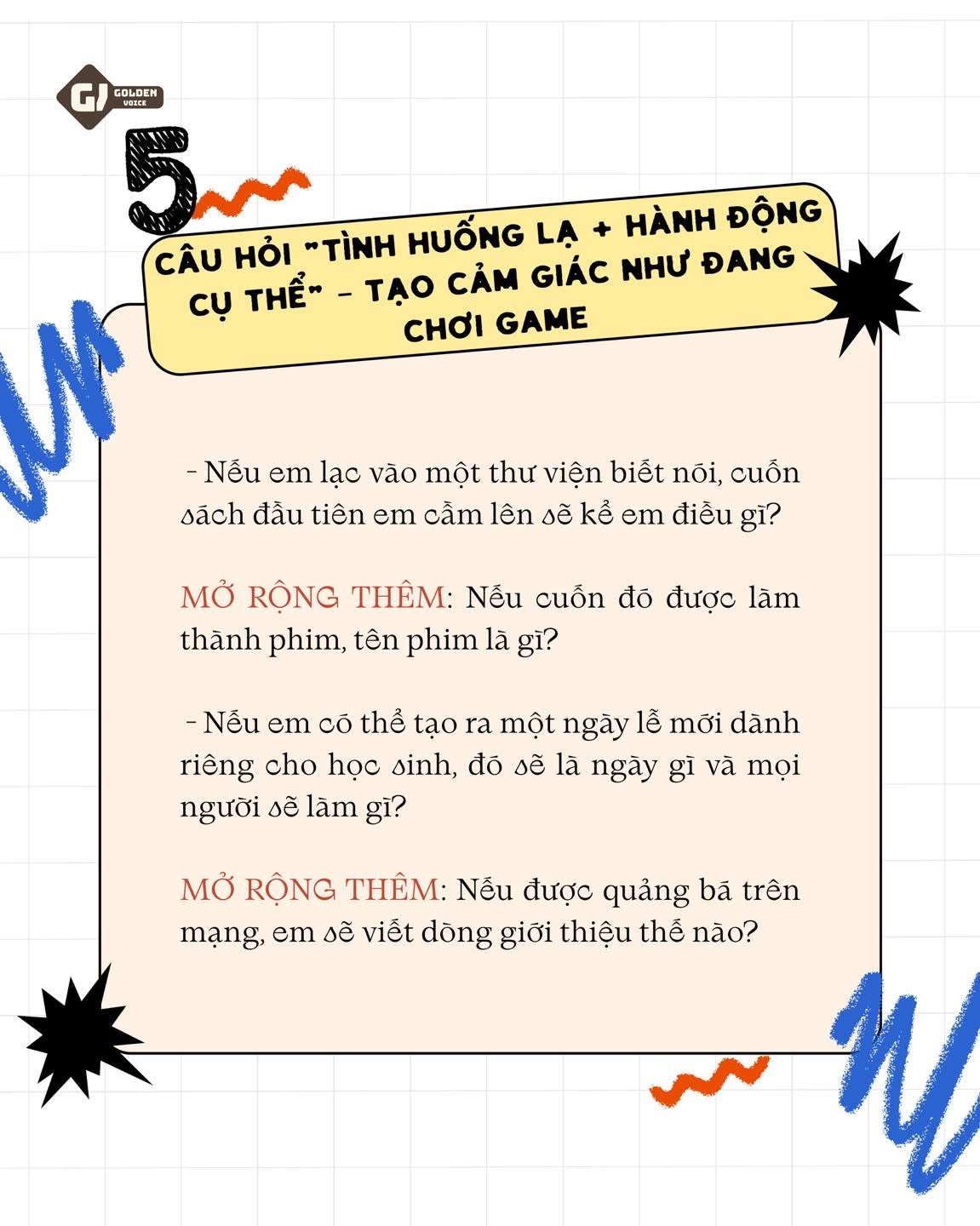 5. Câu hỏi “tình huống lạ + hành động cụ thể” – Tạo cảm giác như đang chơi game