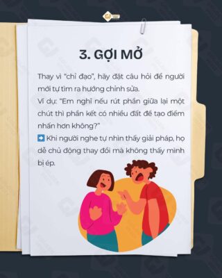 Thay vì “chỉ đạo”, hãy đặt câu hỏi để người mới tự tìm ra hướng chỉnh sửa.